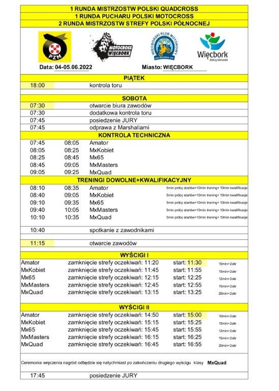 Sezon Mistrzostw Polski w motocrossie jest już na półmetku, chociaż w tym roku rundy Mistrzostw Polski w Więcborku nie będzie. Władze Więcborskiego Klubu Motorowego uznały bowiem, że lepiej zainwestować w zawodników i poprzestać na Pucharze Polski i quadach: