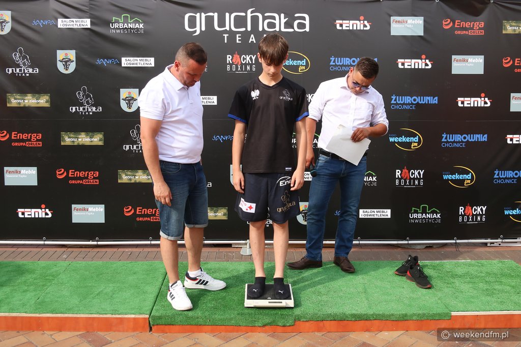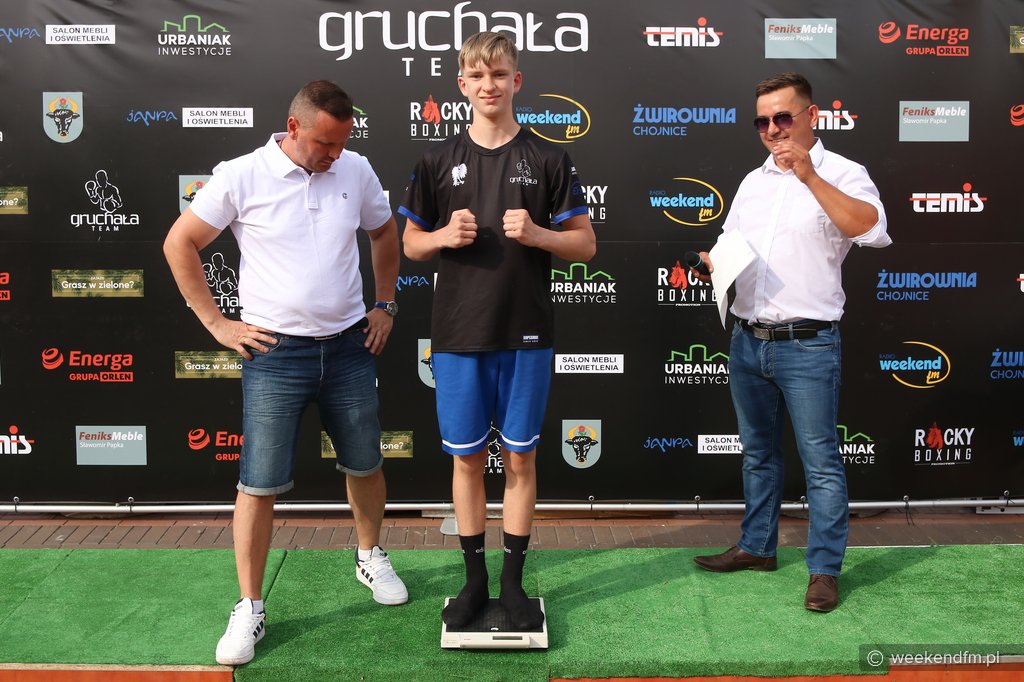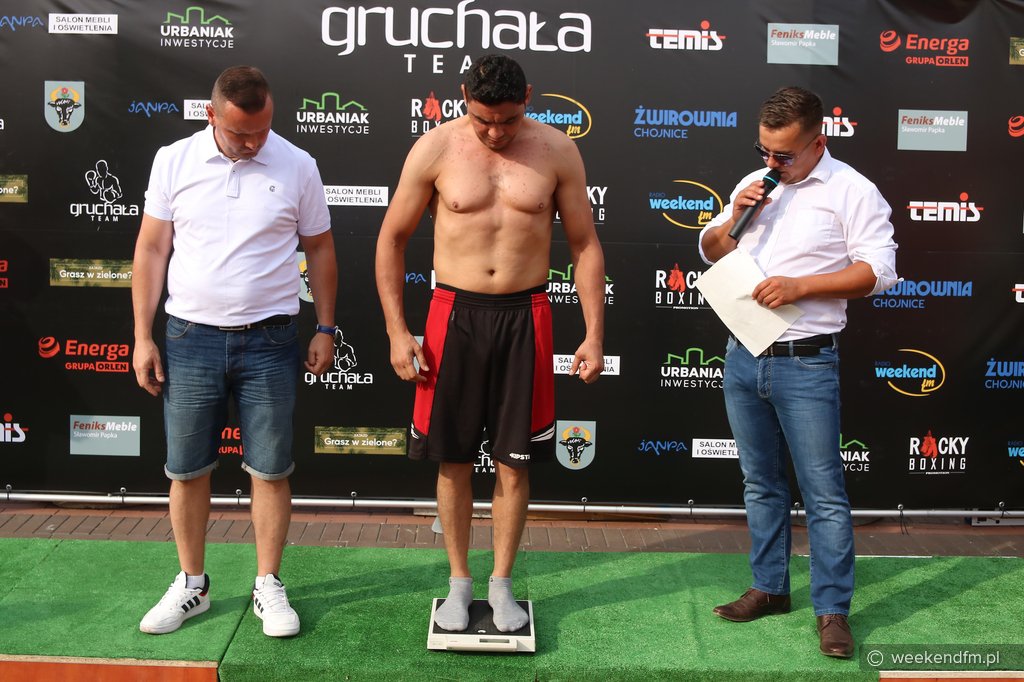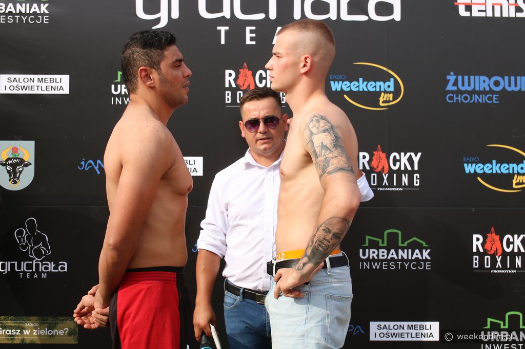 Dokładnie 77 kilogramów i 700 gramów wniósł na wagę przed Chojnickim Energa Boxing Show bohater wydarzenia – Kewin Gruchała. Jego rywal – Egipcjanin Nabil Zaky, pseudonim „Zeus” - w czasie sobotniej (13.08.) ceremonii oficjalnego ważenia na Starym Rynku w Chojnicach był cięższy o 900 gramów. To oni zmierzą się w walce wieczoru niedzielnej (14.08.) gali na 15-lecie Boxing Team Chojnice. Ta odbędzie się na stadionie Chojniczanki.