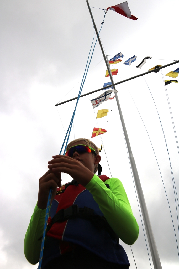 Bandera podniesiona na maszt, regaty wystartowały.