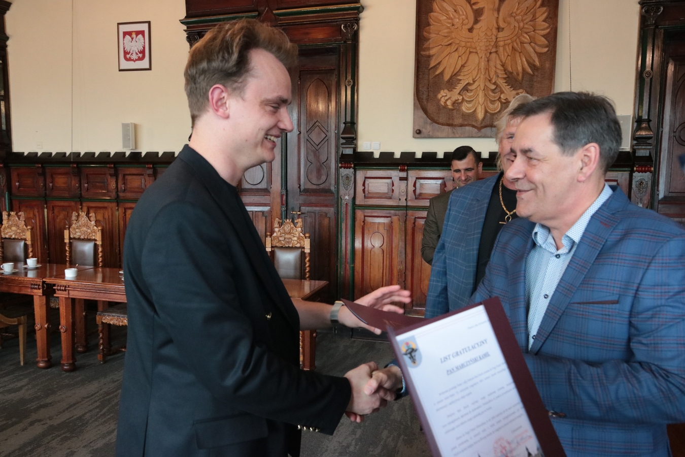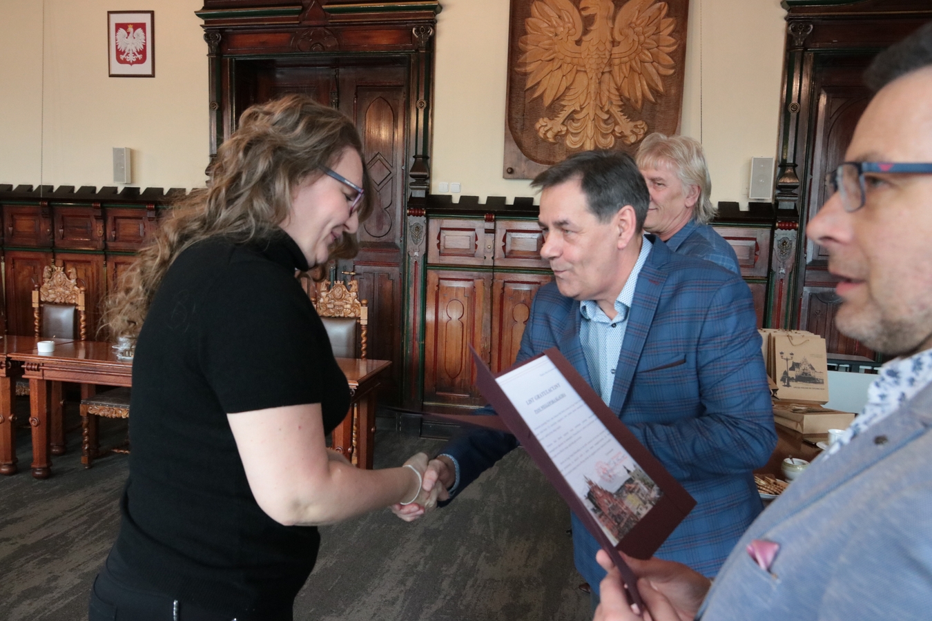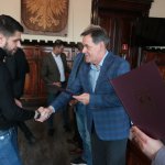 Mówił burmistrz Arseniusz Finster, wręczając listy gratulacyjne i upominki. Zapewnił również, że pójdą za tym indywidualne nagrody pieniężne, a miasto zwiększy też wsparcie finansowe dla klubu. Włodarz powtórzył też przedwyborczą obietnicę, że będzie dążył do budowy nowej hali w mieście.