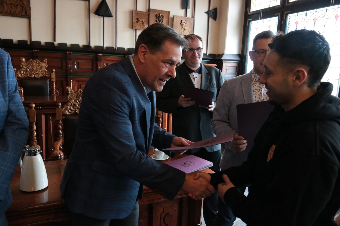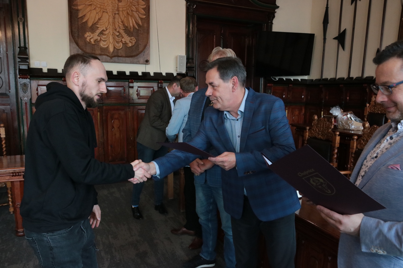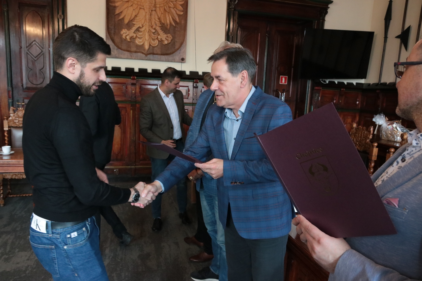 "Czerwone Diabły" w ratuszu. Burmistrz Arseniusz Finster pogratulował zawodnikom, trenerom i działaczom Red Devils Chojnice awansu do Futsal Ekstraklasy (FOTO)
