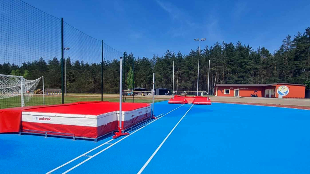 W tej części lekkoatletycznej jest bieżnia czterotorowa 400-metrowa. Są instalacje na skok w dal, wzwyż, rzut kulą, skok o tyczce i nawet mamy miejsce na rzut młotem. Tak że jeśli chodzi o tę część lekkoatletyczną jesteśmy przygotowani, możemy urządzać zawody o randze nawet myślę że wojewódzkiej.