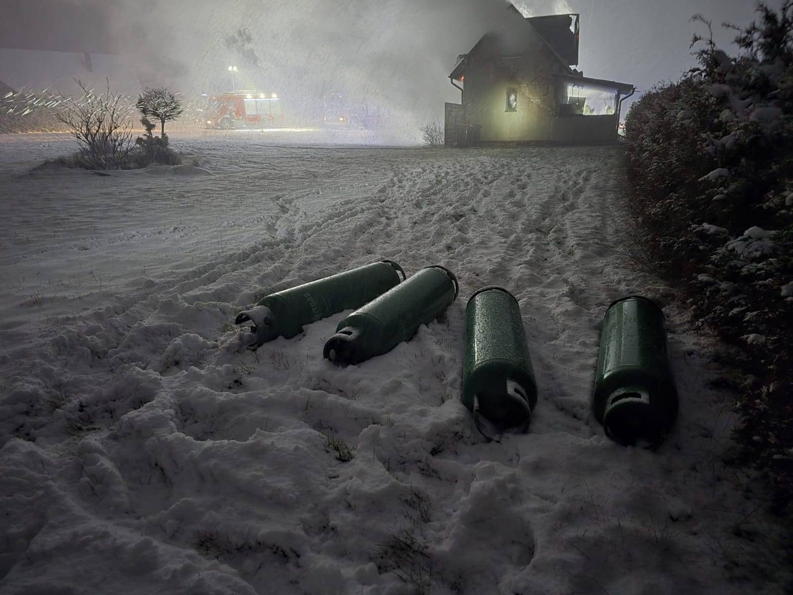 Przeprowadzono rozpoznanie i stwierdzono, że prawdopodobnie doszło do wybuchu piecyka gazowego. W momencie tego prawdopodobnego wybuchu piecyka, kobieta próbowała ugasić pożar, który powstał potencjalnie po tym zdarzeniu przy użyciu gaśnicy proszkowej. Niestety próba nieudana. W trakcie próby gaszenie użytkowniczka budynku została poparzona, min. twarz, szyja, klatka piersiowa oraz obie kończyny górne.