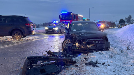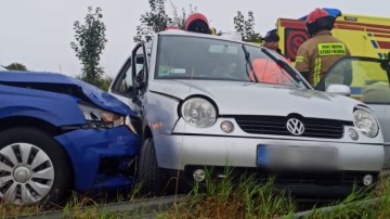 Zderzenie dwóch seatów na krajowej 20 w Mokrzynie w powiecie bytowskim. Dwoje kierowców trafiło do szpitala
