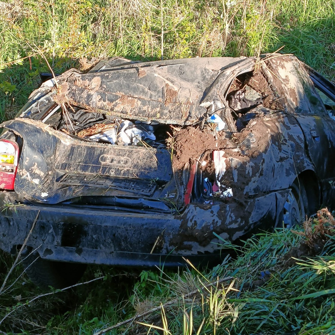 Jak wstępnie ustalili pracujący na miejscu policjanci, 19-latek najprawdopodobniej nie dostosował prędkości do warunków drogowych, stracił panowanie nad pojazdem i dachował w przydrożnym rowie. Młody kierowca osobowego audi oraz jego 18-letnia pasażerka trafili do szpitala. Mężczyzna był trzeźwy. Została mu pobrana krew do dalszych badań, a policjanci zatrzymali mu prawo jazdy.