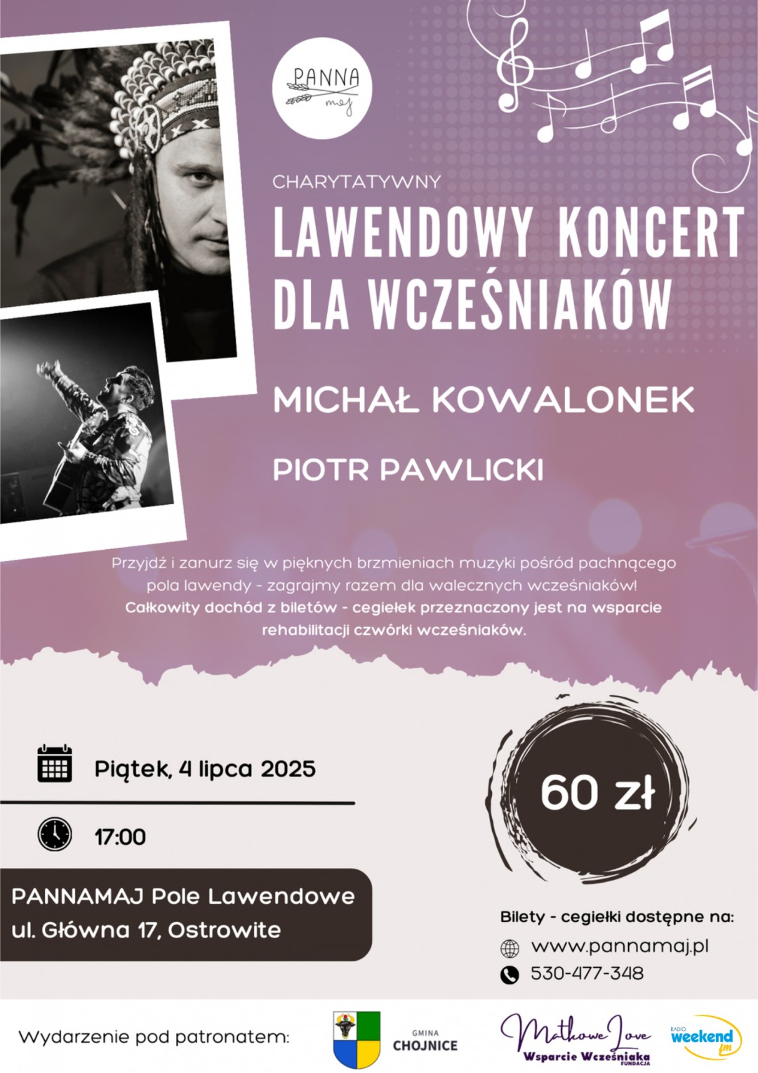 Koncert plenerowy, który odbędzie się 4 lipca na polu lawendy, ma na celu wsparcie finansowe działalności Fundacji MatkoweLove zajmującej się pomocą wcześniakom i ich rodzinom.