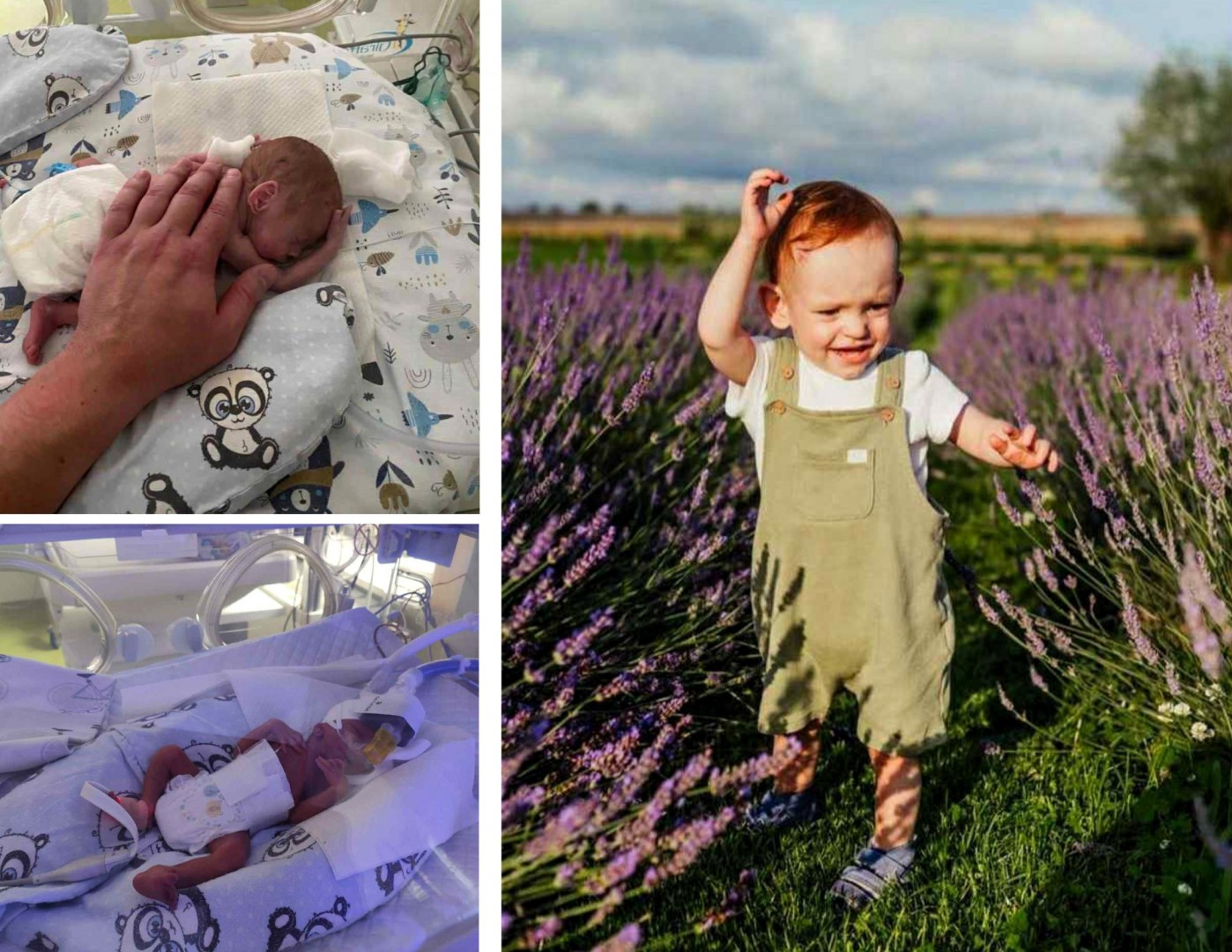 Na zdjęcach po lewej Kubuś po urodzeniu, po prawej rok temu, na polu lawendy.