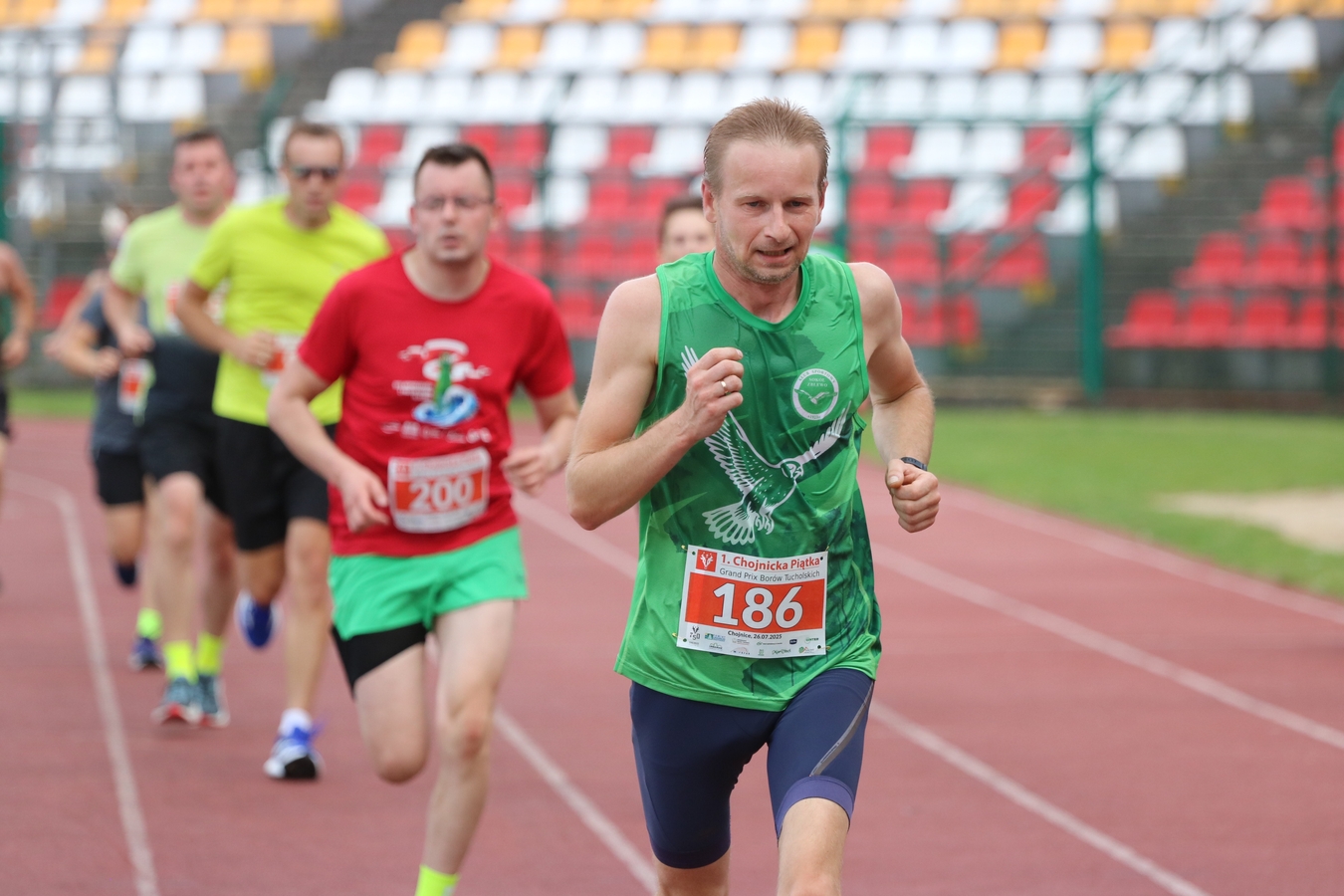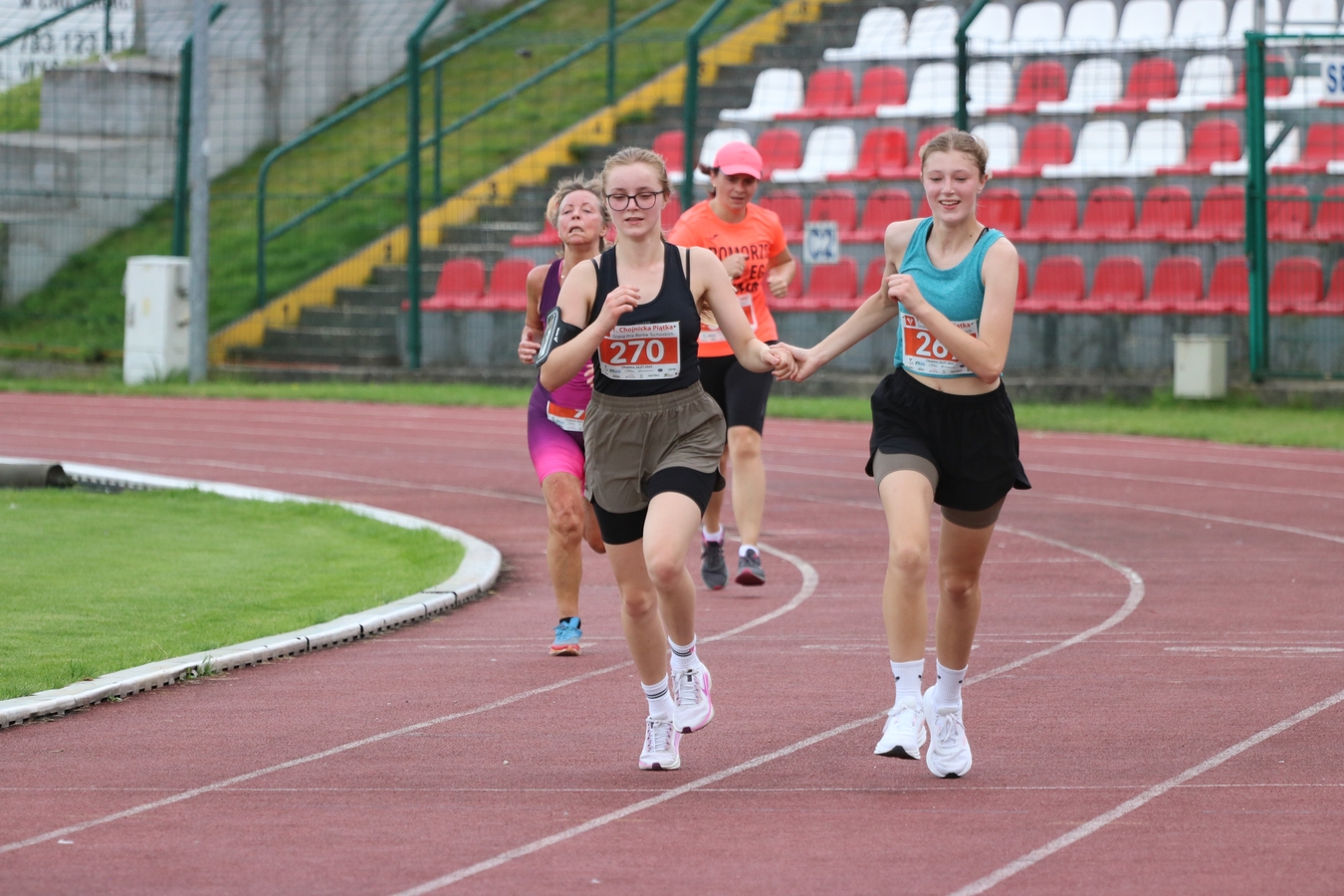 Grand Prix Borów Tucholskich zawitało do Chojnic. To za sprawą Chojnickiej Piątki – biegu ulicami miasta, włączonego w obchody jego 750-lecia. Łącznie na mecie zameldowało się blisko 550 zawodników. Na tę liczbę składa się ok. 150 uczestników biegów dla dzieci, 42 osoby, które maszerowały z kijkami i 345 zawodników, którzy przebiegli główny na 5 km.