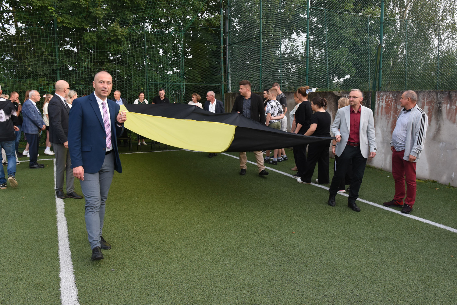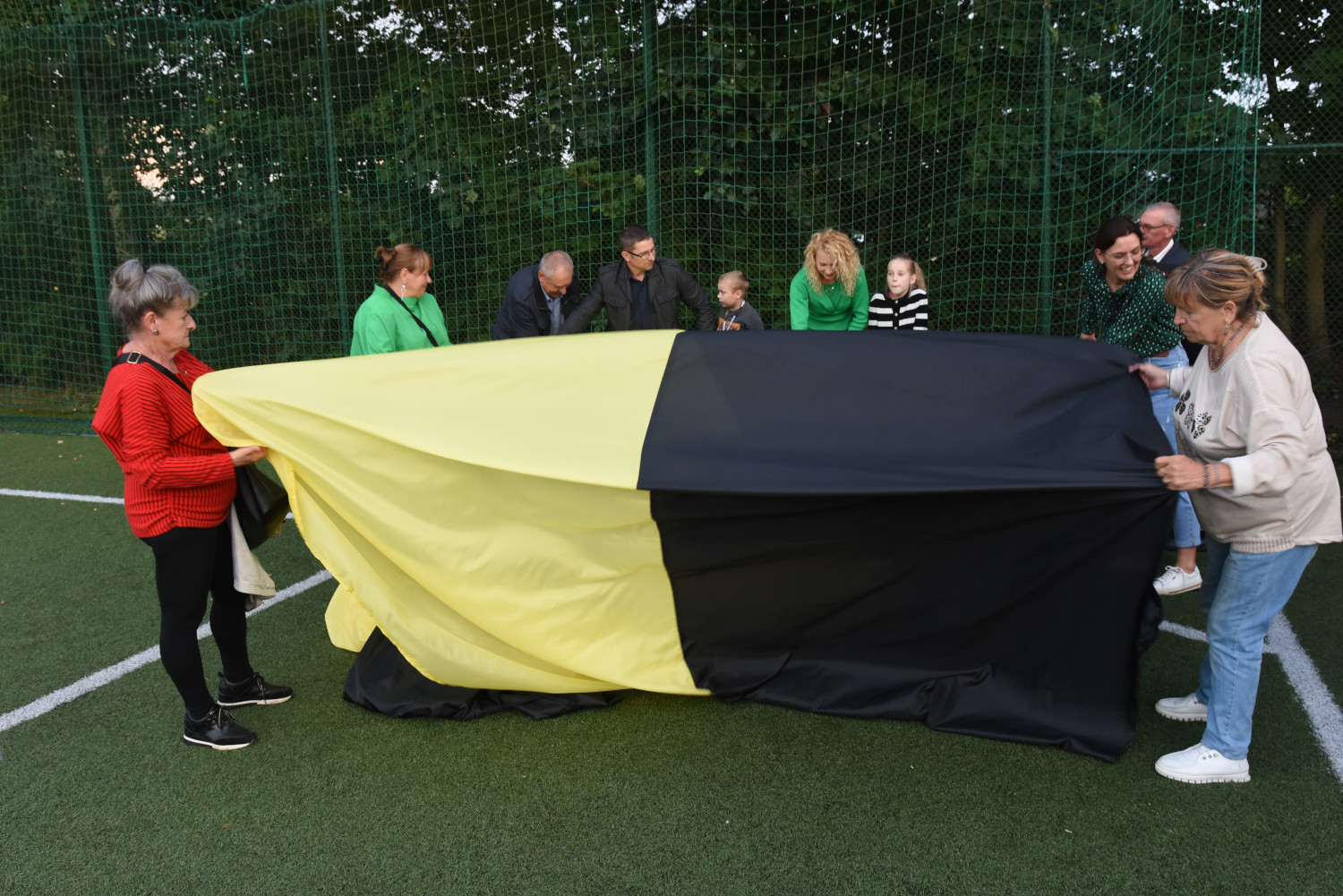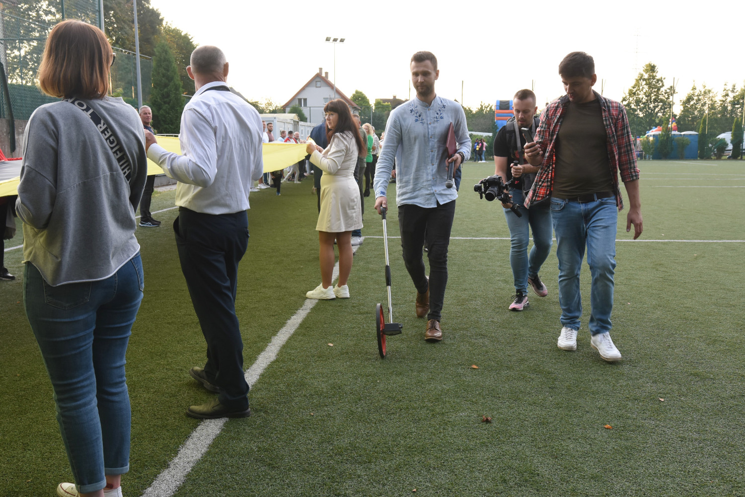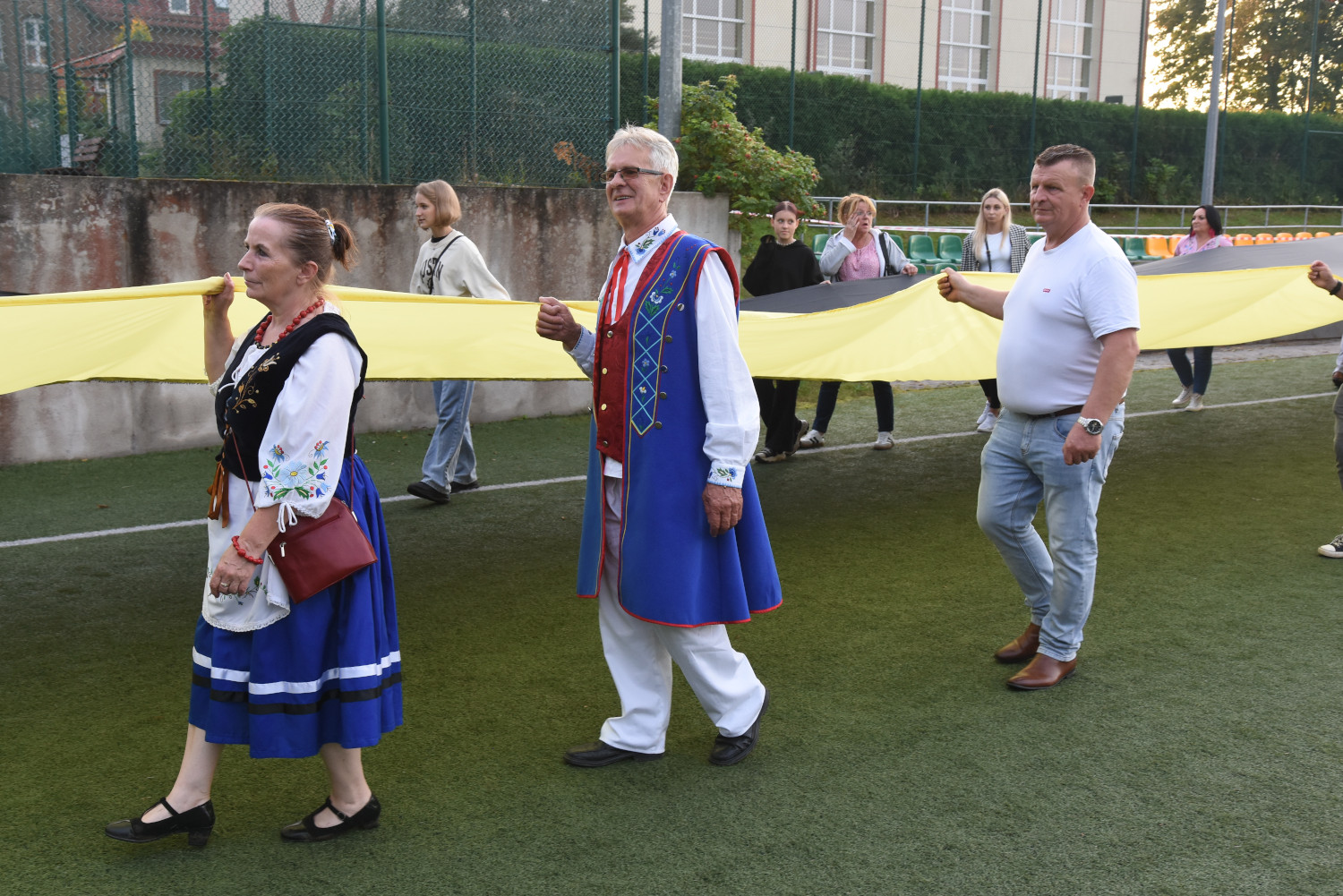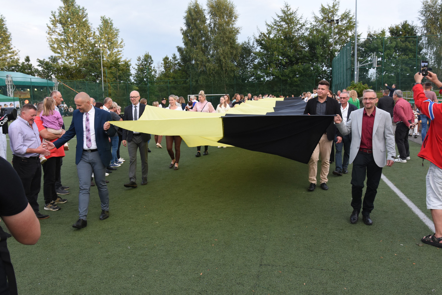 Długość miała 95 metrów i 2 metry 96 centymetrów szerokości. To miała być liczba symboliczna, ponieważ szkoła obchodziła 95-lecie. Metr flagi za rok funkcjonowania szkoły. Czy padł faktycznie? Będzie to musiało biuro rekordów zweryfikować, musimy przesłać wszelkie wytyczne, wytyczne z drona, pomiar, relacje świadków. Tak że jeżeli zaakceptują to będziemy mogli dopiero wtedy powiedzieć, że faktycznie padł rekord Polski na największą flagę kaszubską.