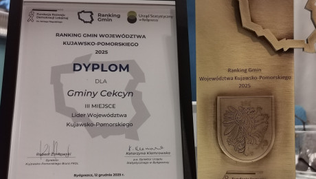 Cekcyn wysoko w rankingu gmin województwa kujawsko-pomorskiego. Ma trzecie miejsce w kategorii "Lider województwa"