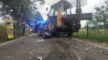 Poważny wypadek w gminie Studzienice. Motocyklista stracił nogę po zderzeniu z koparko-ładowarką