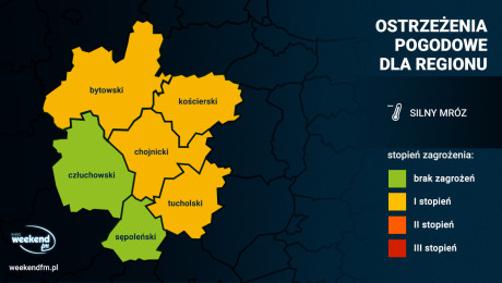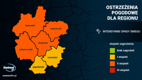 Ostrzeżenie dla naszego regionu obowiązuje w powiatach: chojnickim, człuchowskim, bytowskim, kościerskim i tucholskim.