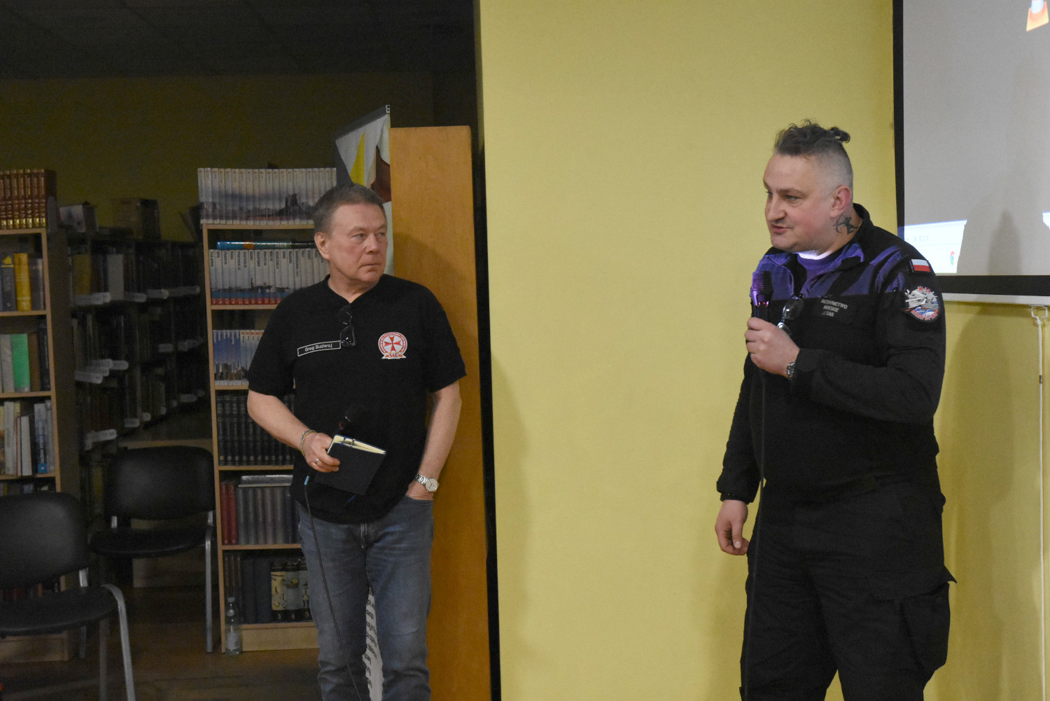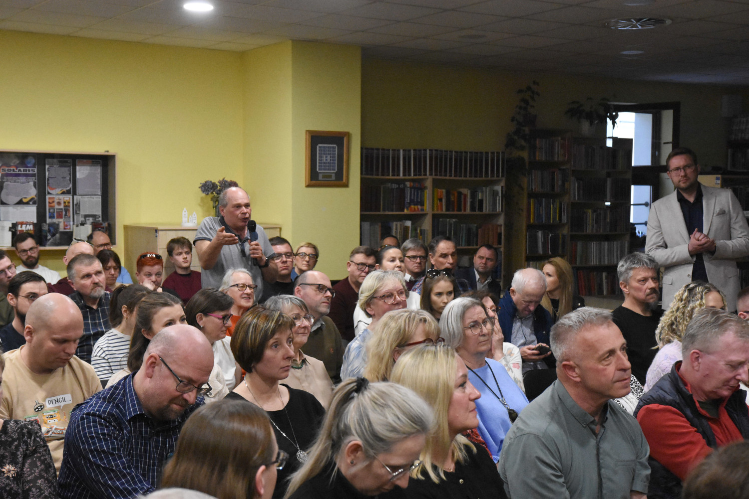 W czytelni biblioteki na pytania zebranych odpowiadał także ocalały drugi elektryk z Heweliusza Grzegorz Sudwoj. Odniósł się między innymi do procesu w Izbie Morskiej oraz kwestii innego statku, który znalazł się na kursie kolizyjnym z Heweliuszem.