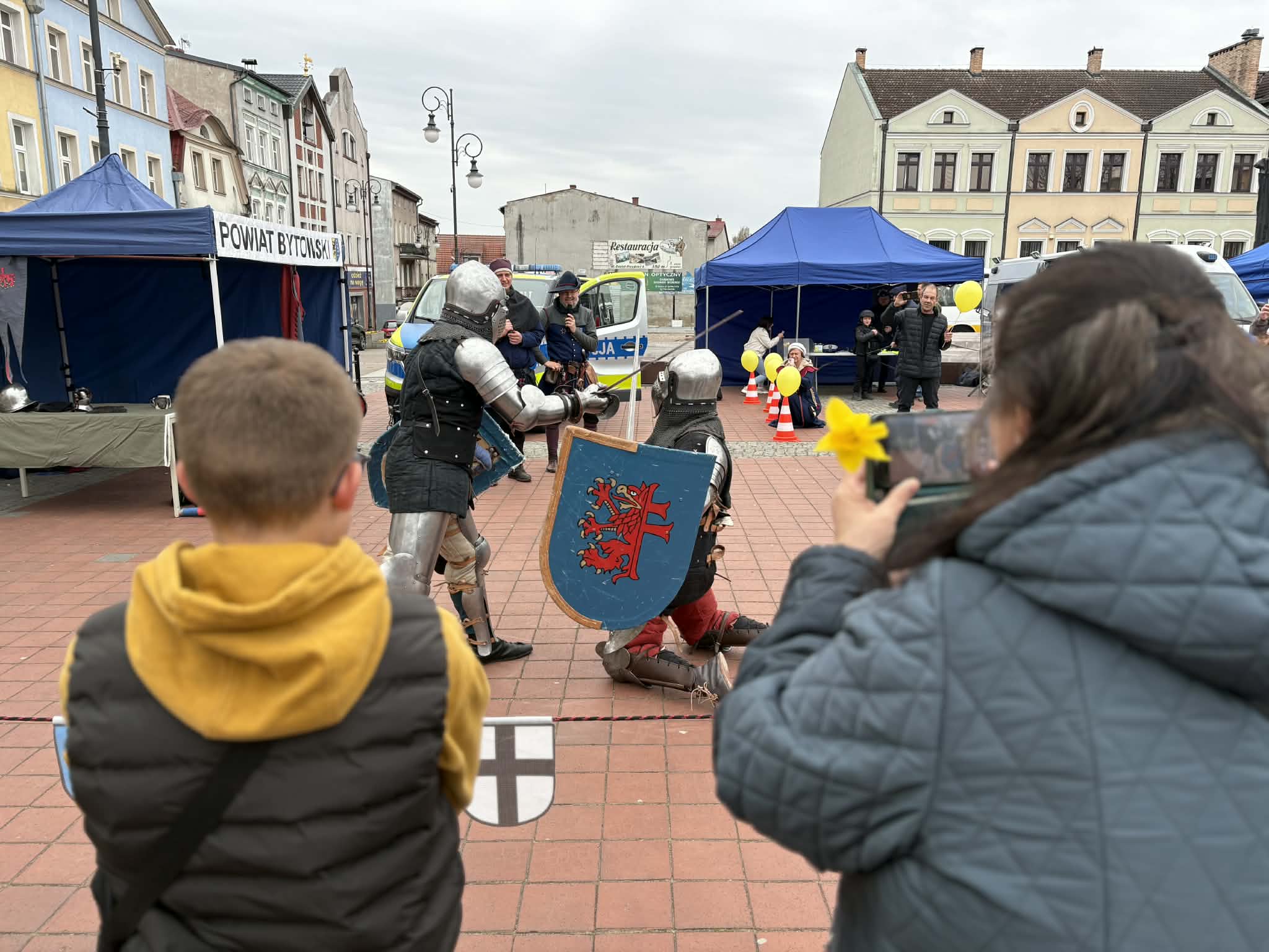 W organizację Bytowskich Pól Nadziei zaangażowało się wiele osób i różnych instytucji. W kampanię włączyli się m.in. rycerze. - Przygotowaliśmy pokazy walk rycerskich. Każdy może dziś na rynku stanąć w szranki w rycerskim umundurowaniu. Chcemy w ten sposób zachęć do włączenia się do charytatywnej akcji – mówi Weekend FM Aleksander Kikcio z Zastępu Krzyżogryfa z Bytowa. W organizację Bytowskich Pól Nadziei przyłączyli się także policjanci. - Prezentujemy na rynku sprzęt policyjny i zdradzamy tajniki pracy funkcjonariuszy kryminalnych - mówi Anna Trzebiatowska - Mach z Komendy Powiatowej Policji w Bytowie: