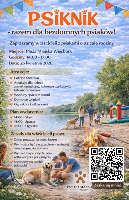 Będą ognisko z kiełbaskami, wspólny spacer i integracja, mnóstwo atrakcji dla najmłodszych i loteria fantowa. Przytulisko dla psów i kotów w Więcborku zaprasza dziś (26.04) na charytatywny "Psiknik".