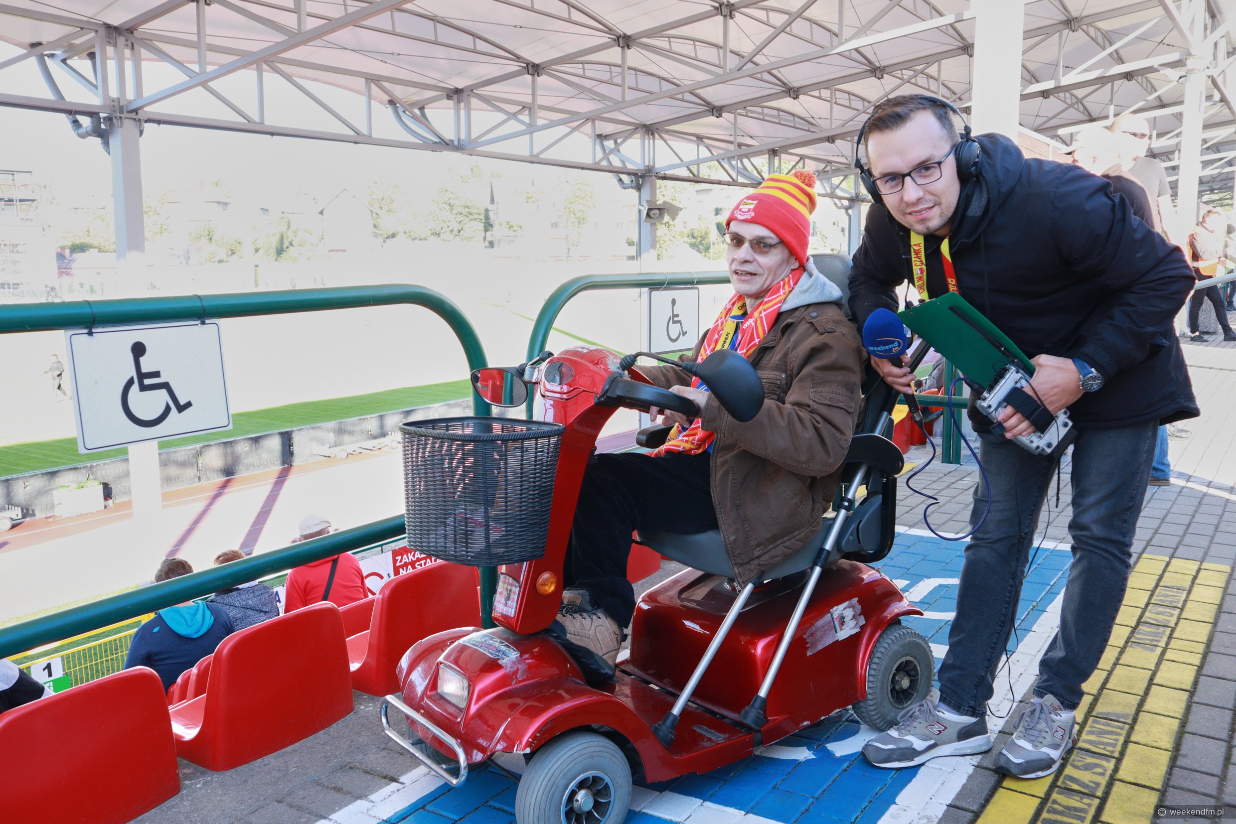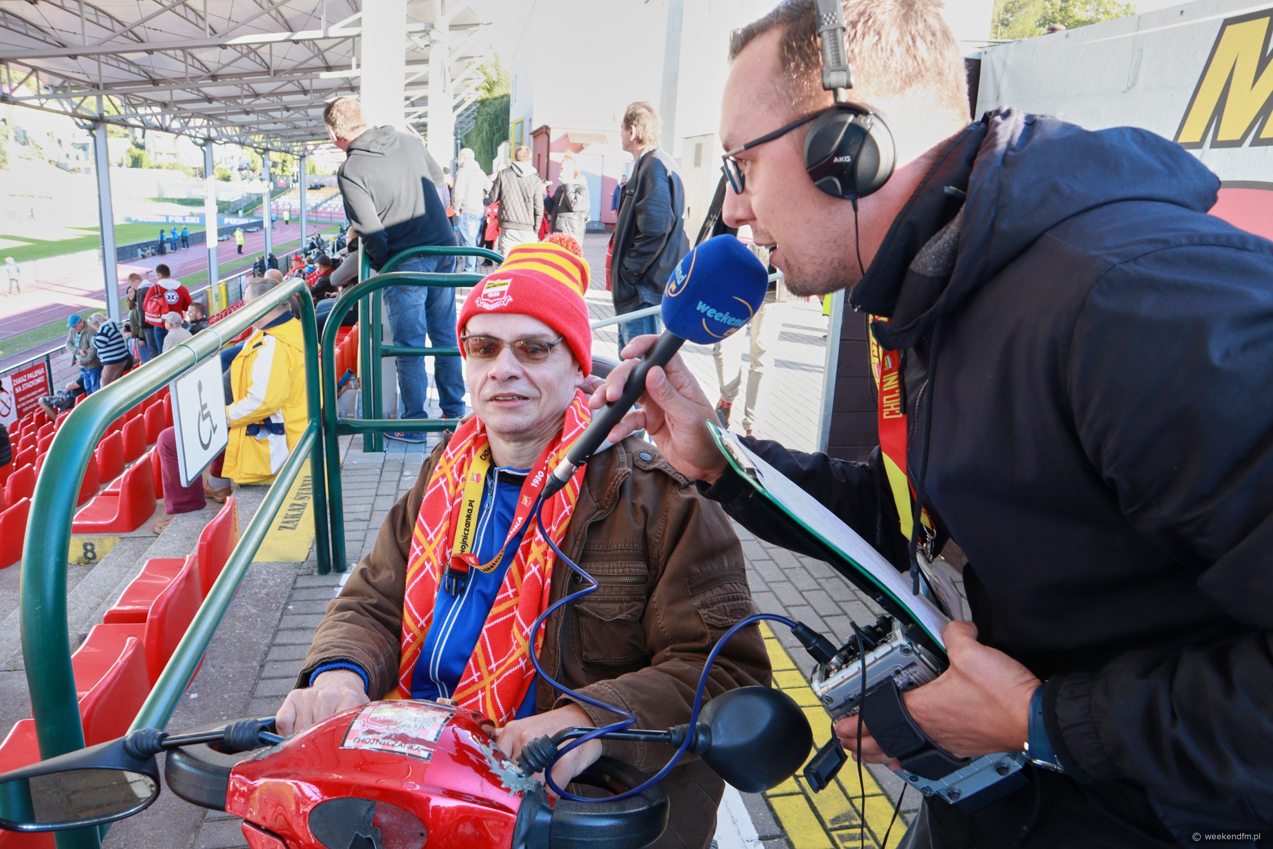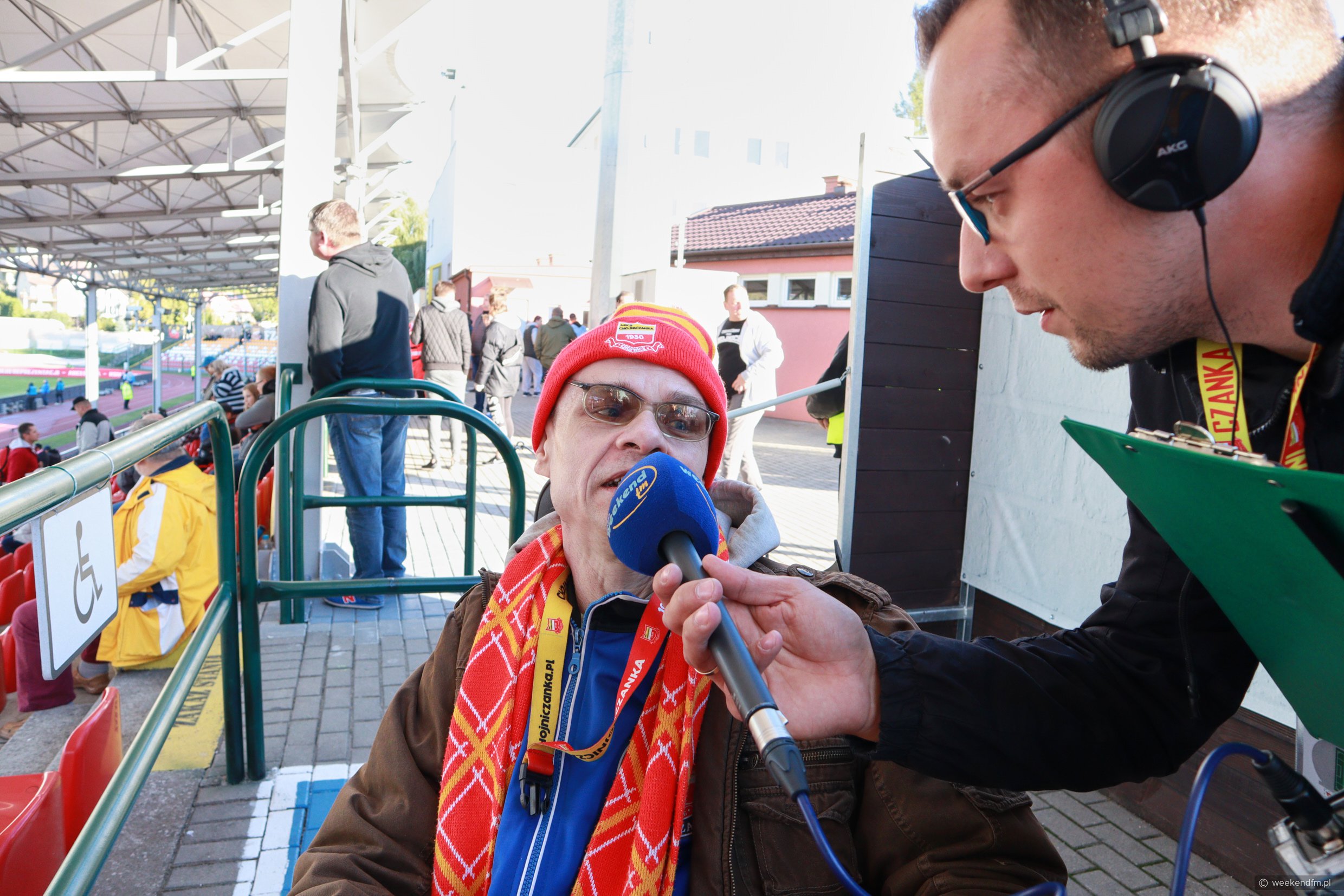 Na stadionie Chojniczanki ustawiliśmy mobilne studio Weekend FM. Nasz reporter Wojciech Piepiorka relacjonował na żywo mecz na antenie naszego radia.
