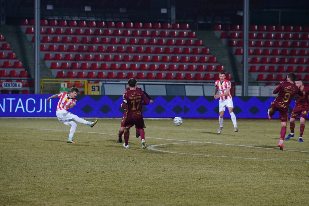 To na pewno są bardzo trudne mecze. Takie, bo wiedzieliśmy, że jest tutaj atmosfera taka, że my gdzieś tam w dole i Chojniczanka może to wykorzystać. Bo widać było bardzo dużo agresywności, jeżeli chodzi o zespół z Chojnic. Znam Adama, to wiem, że nastawił bardzo bojowo tutaj zespół. My akurat bardzo dobrze wykonaliśmy pierwszy stały fragment gry, który otworzył ten mecz i przekręciło się światełko u naszych zawodników i widać swobodę, jaką dostali później i kontrolowaliśmy w pełni ten mecz.