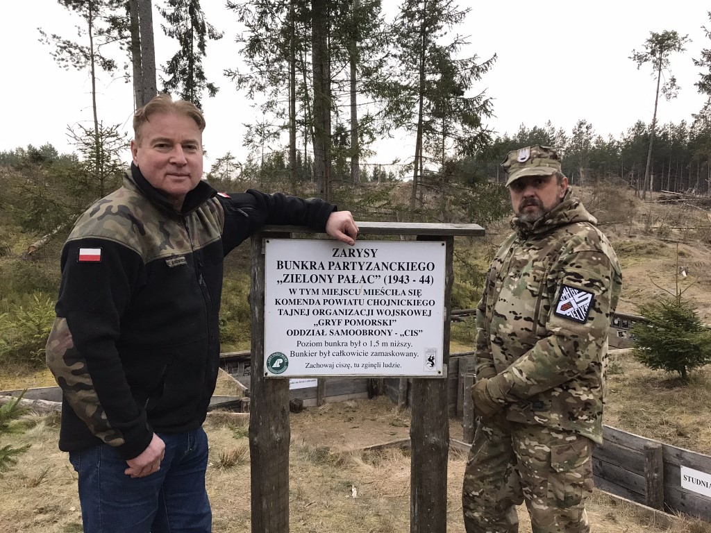 O obronie Zielonego Pałacu opowiada Wojciech Derewiecki, szef Stowarzyszenia Miłośników Historii Gryfa Pomorskiego "CIS" z Męcikału, które w 2016 r. zrekonstruowało i udostępniło zwiedzającym zarys partyzanckiego bunkra.